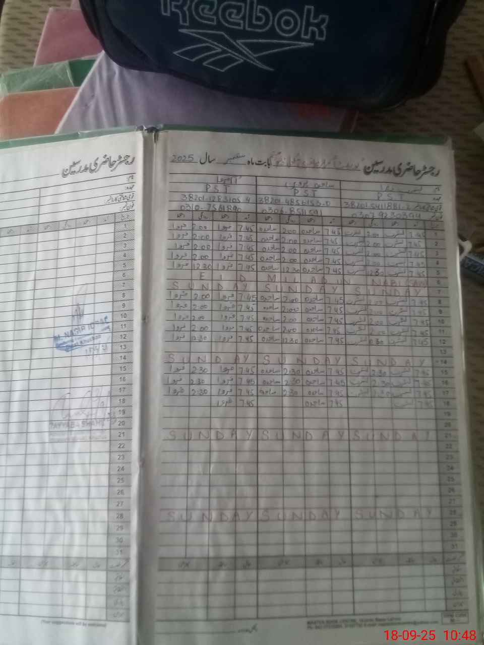 | CNIC | Full Name | Designation | R/C | Absence During Last Calender Month |