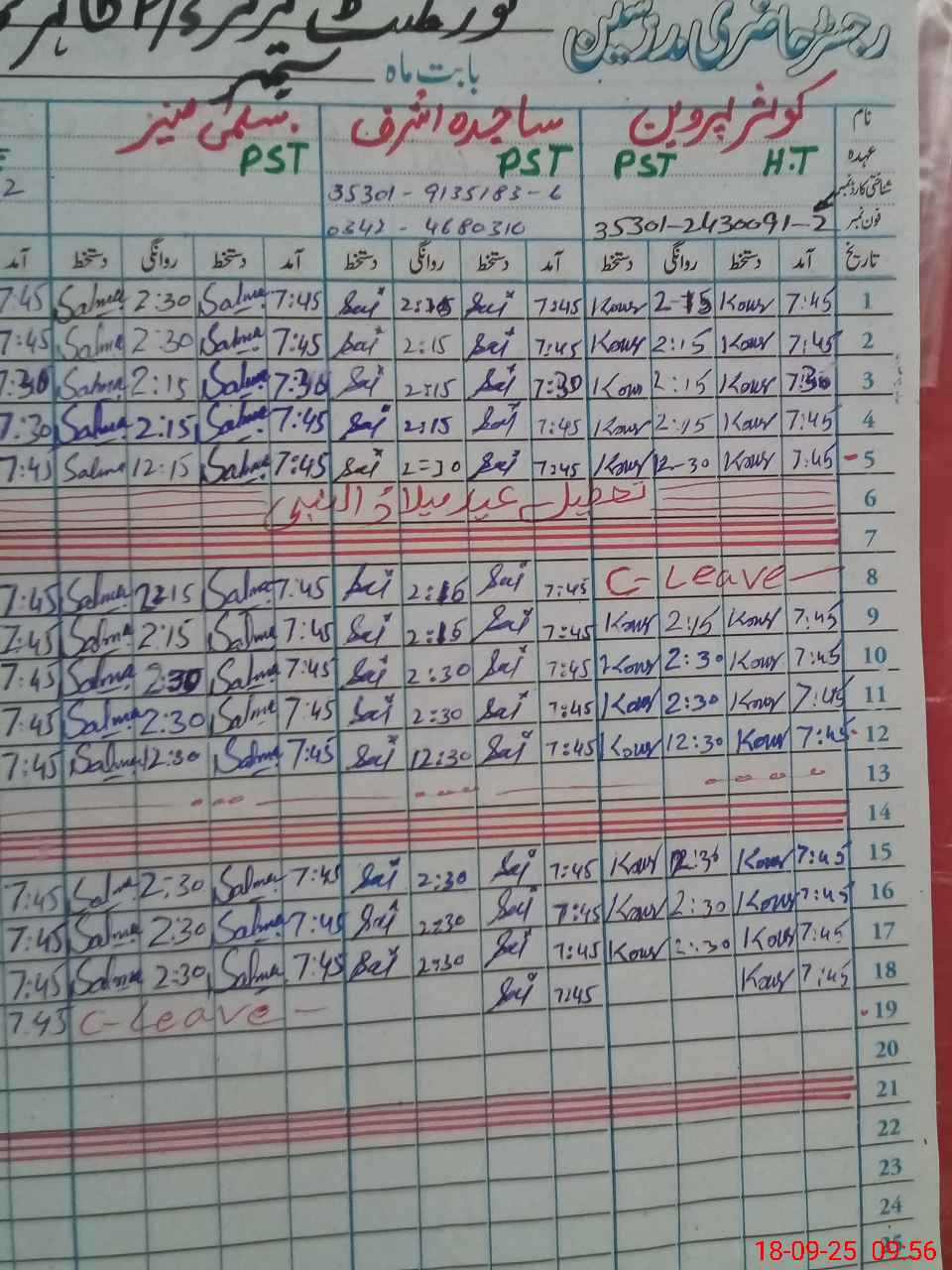 | 35**** | Sa**** Mu**** | PST | Regular | 0 | 0 | 0 | 0 | 0 | 0 | 0 | 0 | 0 | Casual |