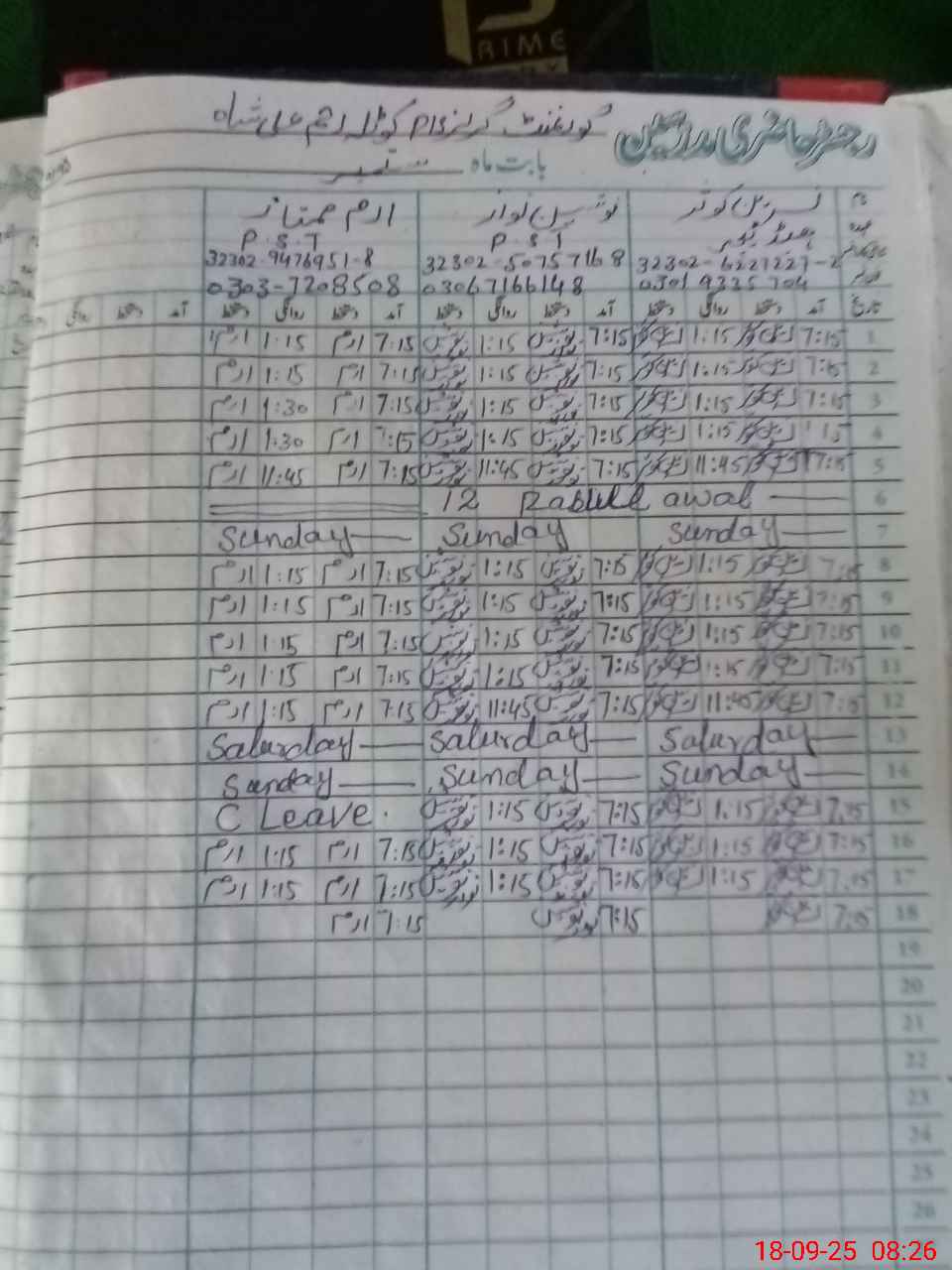 | CNIC | Full Name | Designation | R/C | Absence During Last Calender Month |