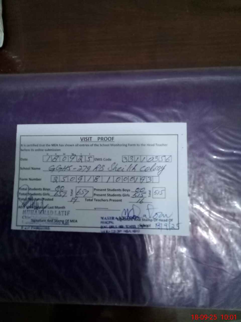| EMIS Code: 33110356 | Name of School: GGHS SHEIKH COLONY, FAISALABAD | |||
