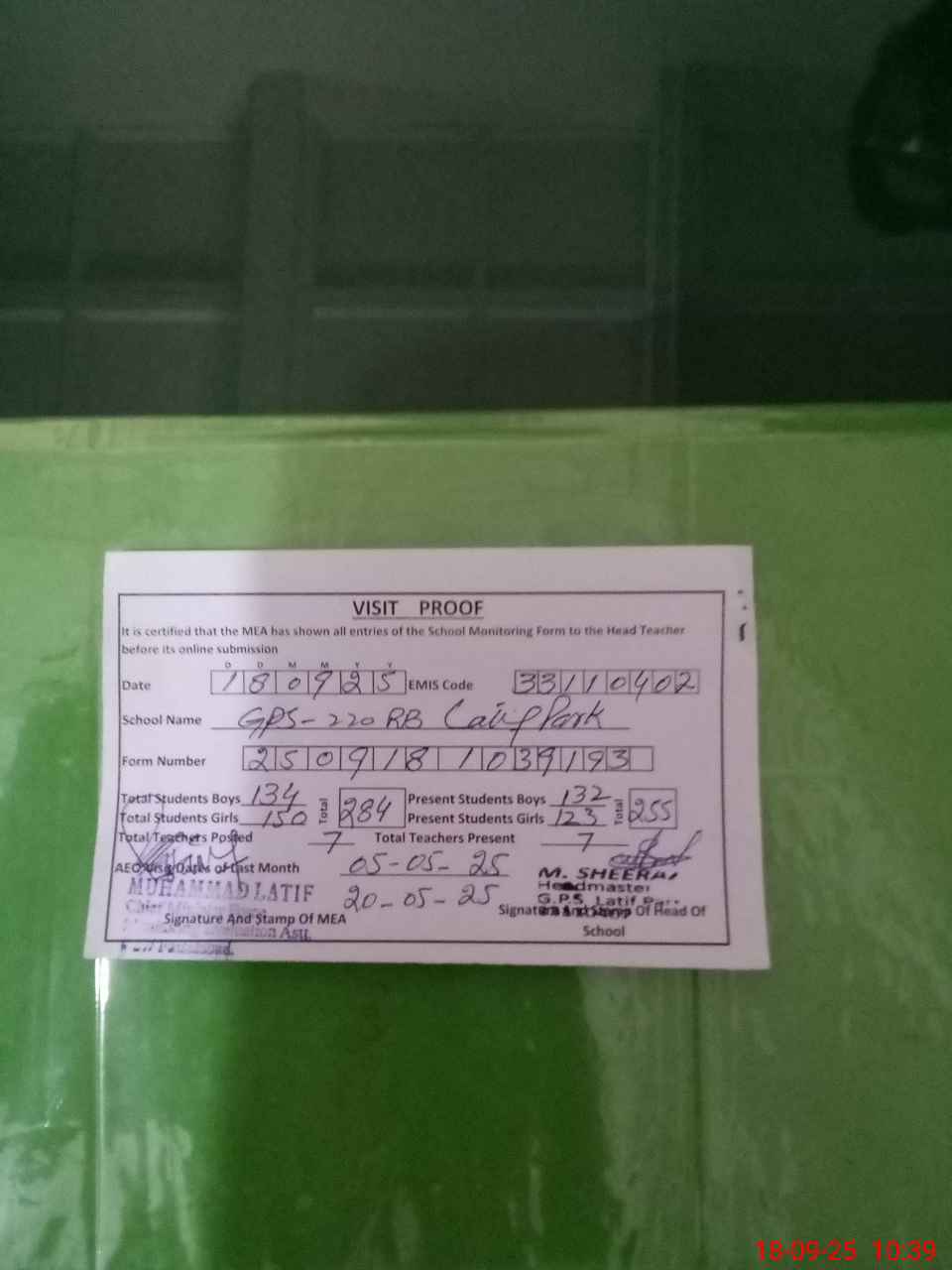 | EMIS Code: 33110402 | Name of School: GPS LATIF PARK | |||