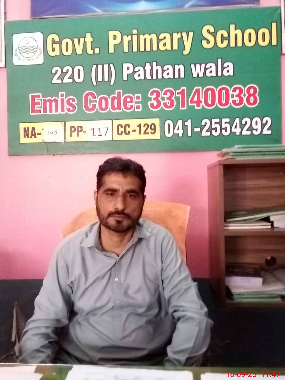 | Name: MU**** JA**** Designation: (School Headmaster's/Headmistress's) PST/PTC/JV Phone/Cell Number: 03**** |