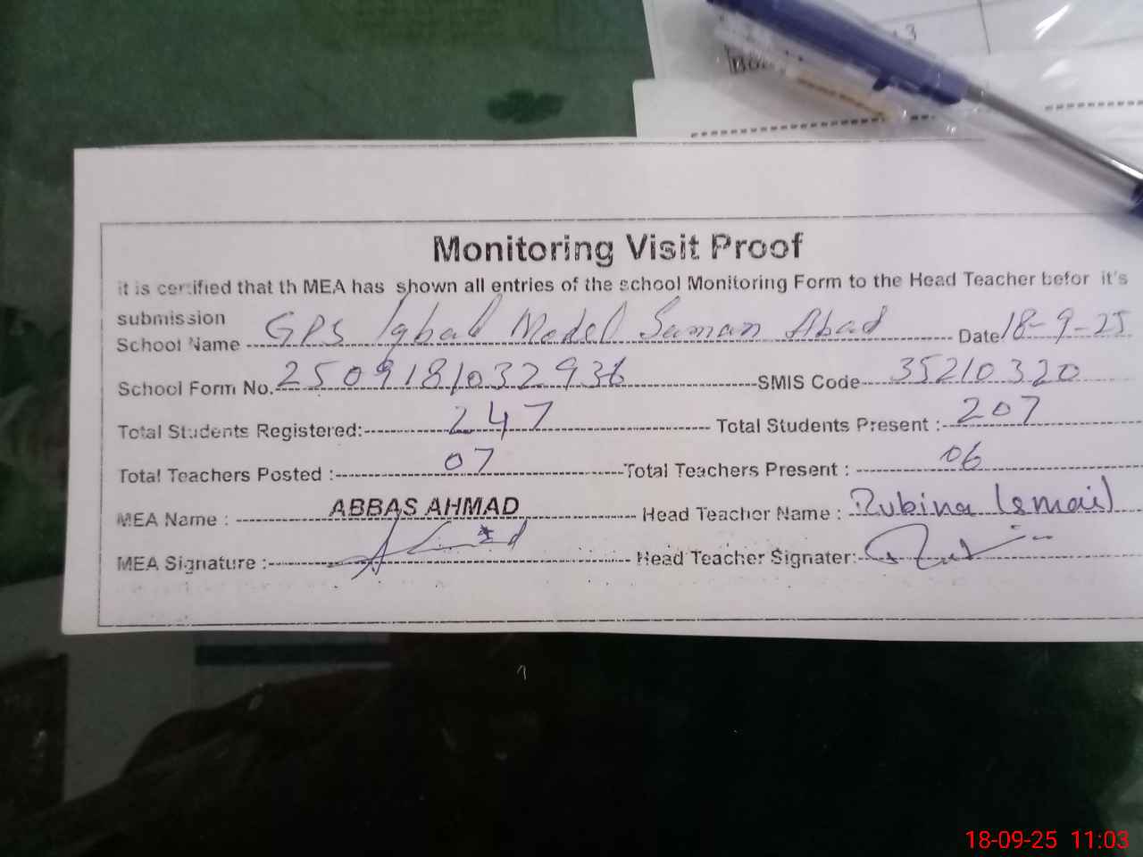| EMIS Code: 35210320 | Name of School: GPS IQBAL MODEL SAMANABAD | |||