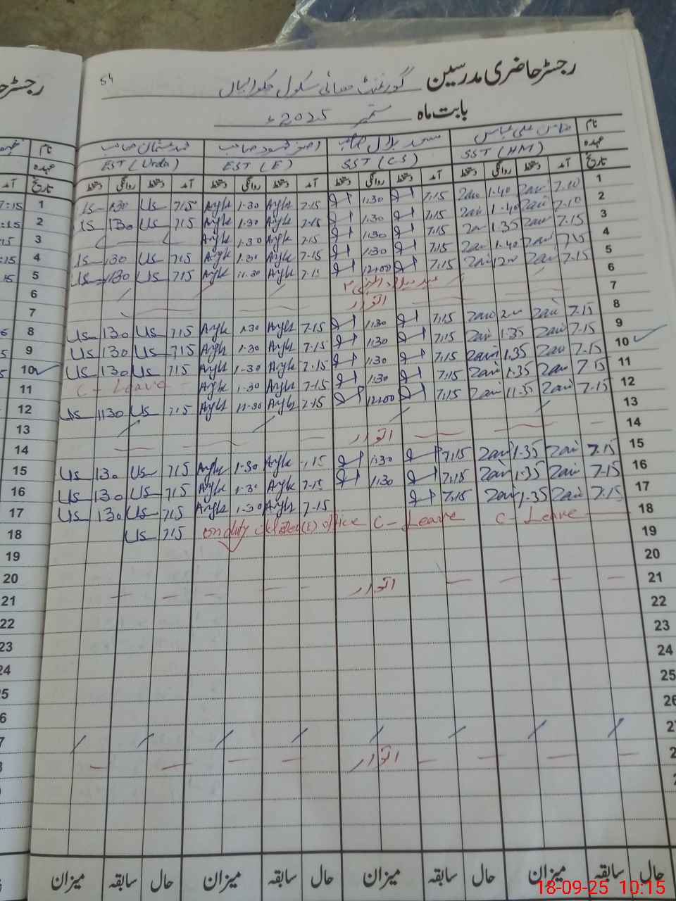 | 37**** | Za**** Al**** Ab**** | SST | Regular | 0 | 0 | 0 | 0 | 0 | 0 | 0 | 0 | 0 | Casual |