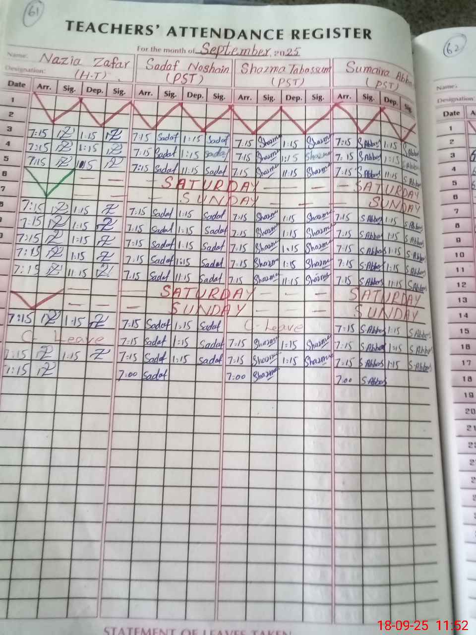 | Leave | Duty | Absent | Maternity | Medical | Ex- Pak |