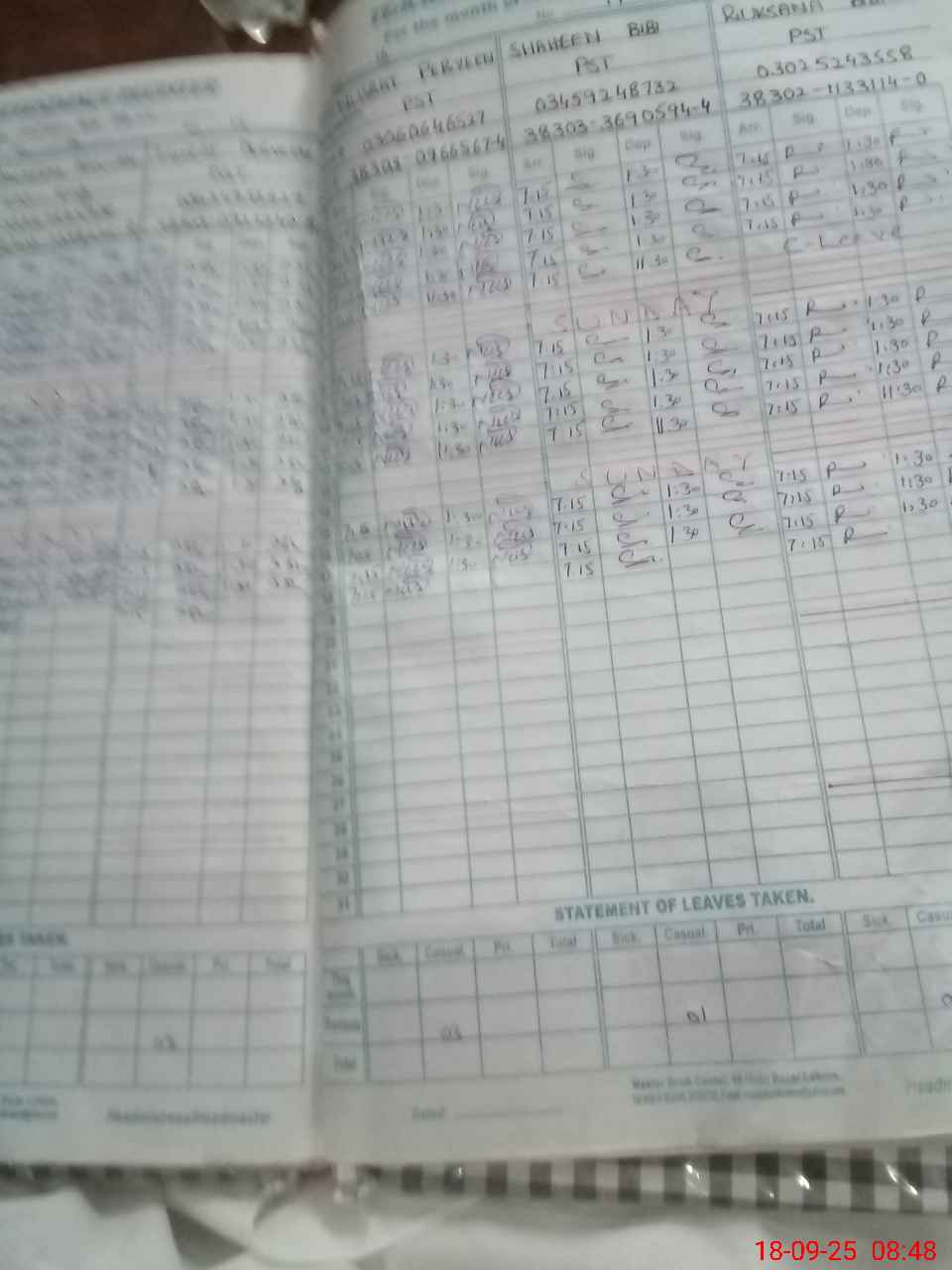 | CNIC | Full Name | Designation | R/C | Absence During Last Calender Month |