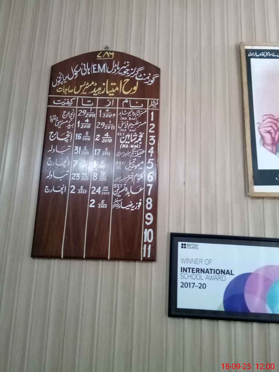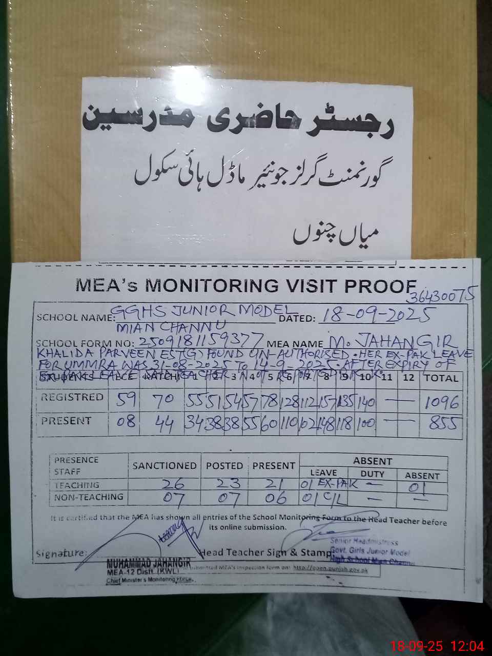| EMIS Code: 36430075 | Name of School: GGHS JUNIOR MODEL MIAN CHANNU | |||