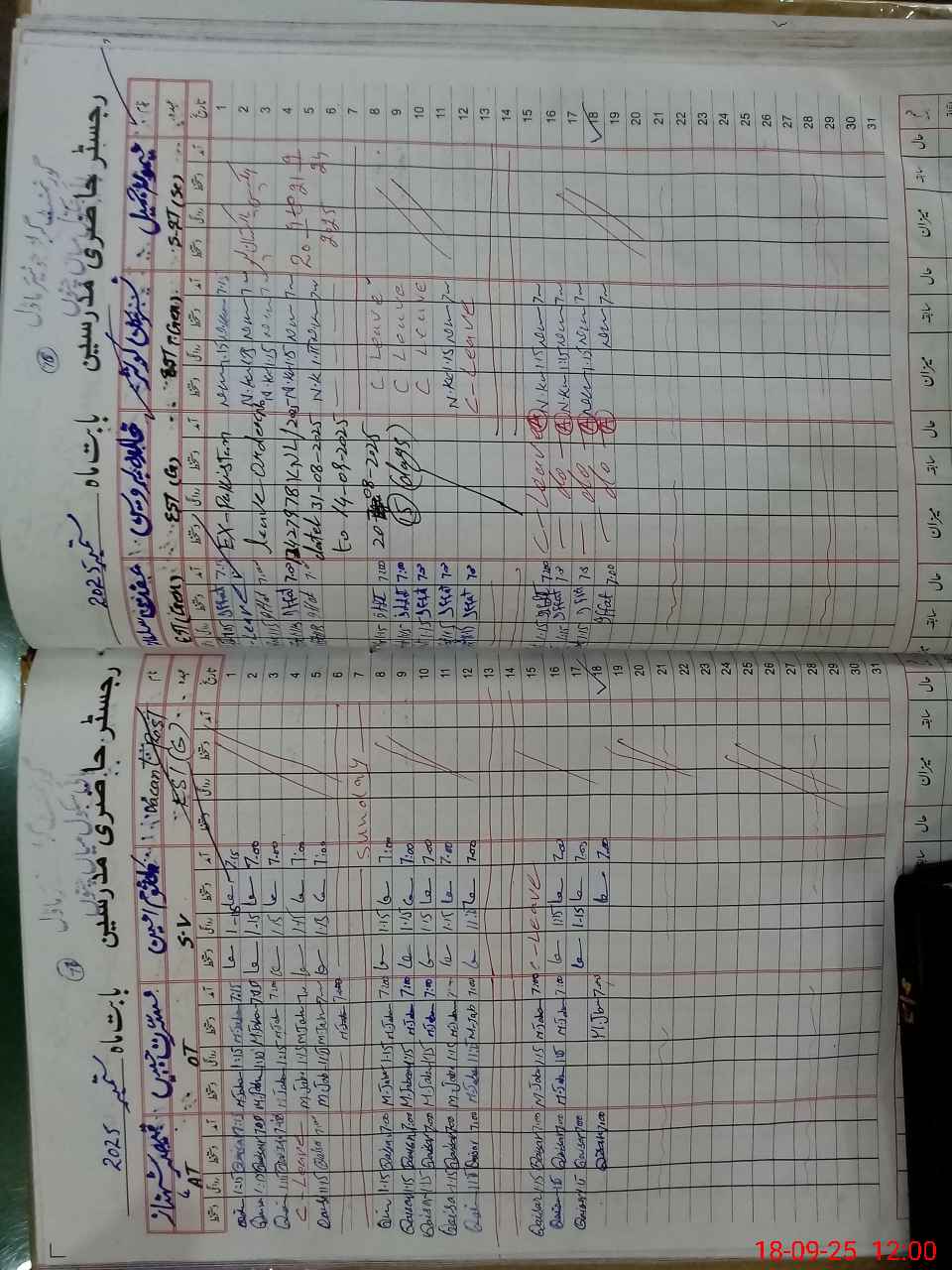 | 36**** | Kh**** Pa**** | 1 | 1 | 0 | 0 | 0 | 0 | 1 | 0 | 0 | 0 | Absent (Un-Authorized) | |