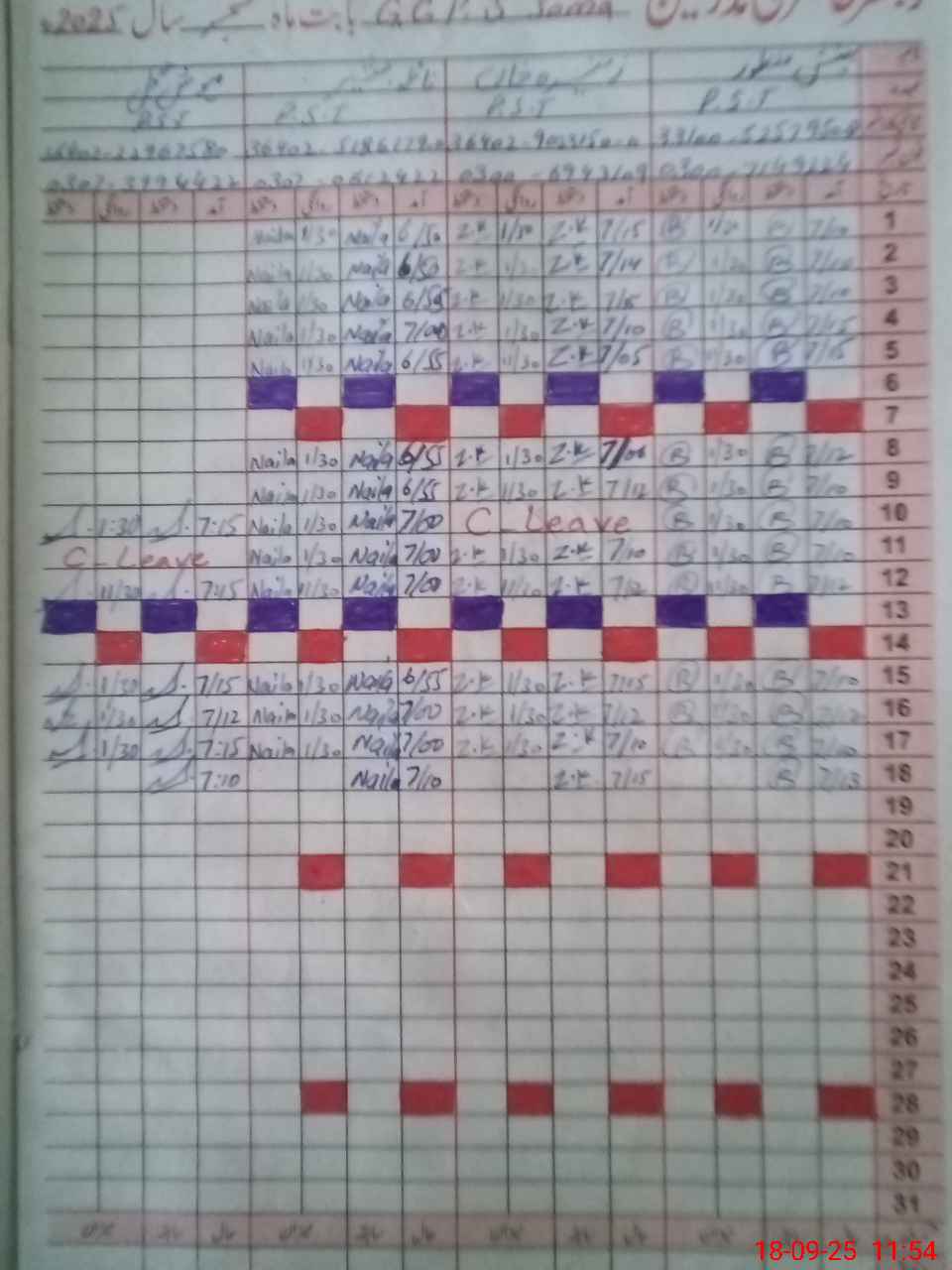 | CNIC | Full Name | Designation | R/C | Absence during last cal. month |
