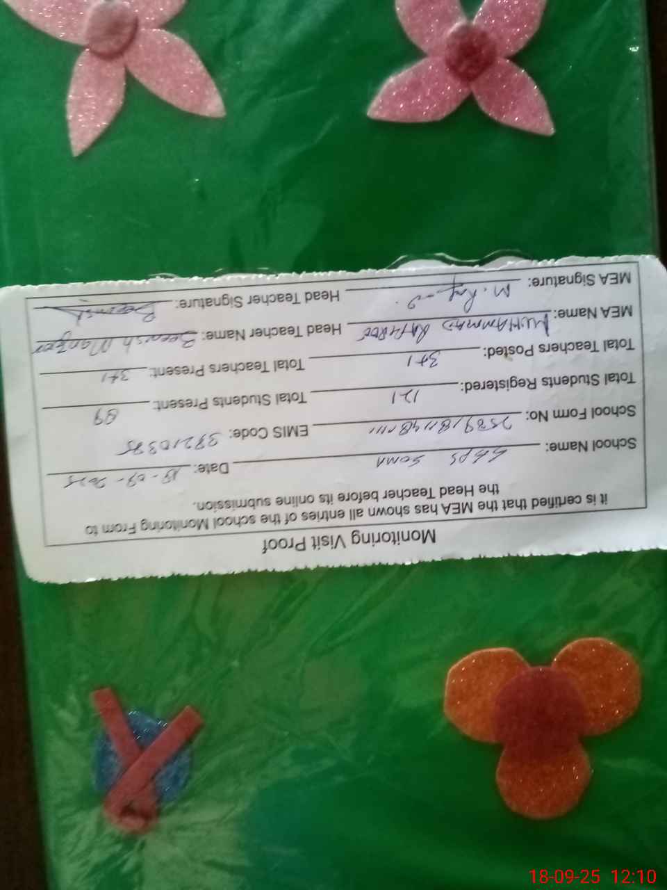 | Attendance Register | Head Teacher | MEA with School | Visit Proof |