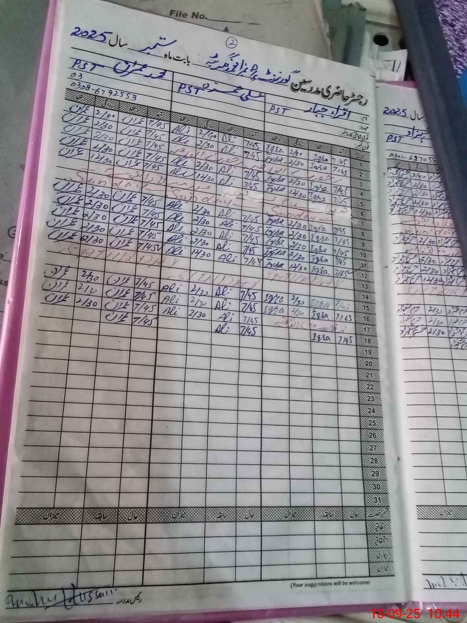 | Name: M.IS**** HU**** Designation: (School Headmaster's/Headmistress's) PST Phone/Cell Number: 03**** |