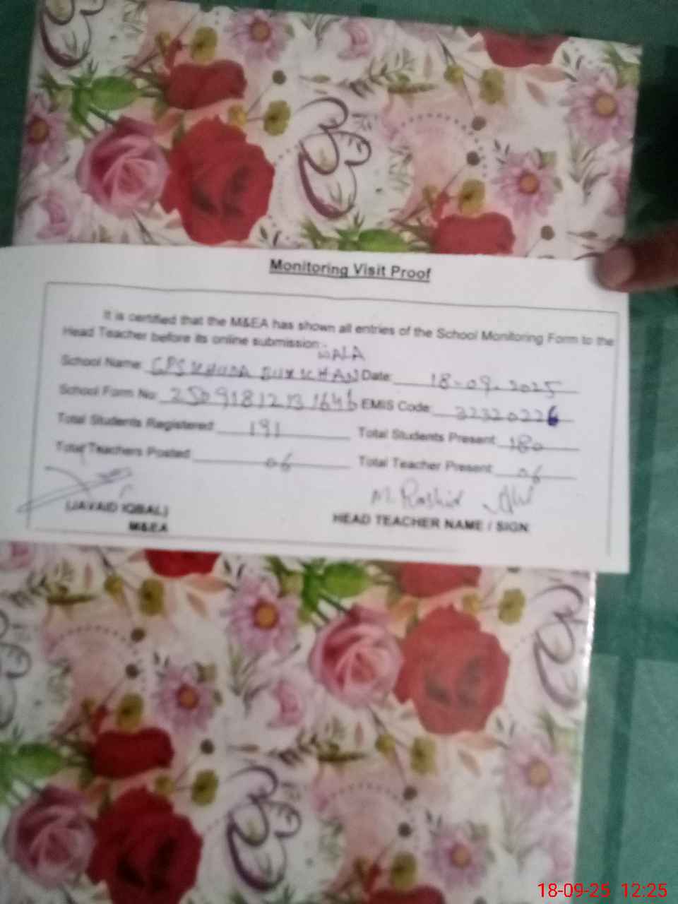 | EMIS Code: 32320226 | Name of School: GPS KHUDA BAKHASH KHAN WALA | |||