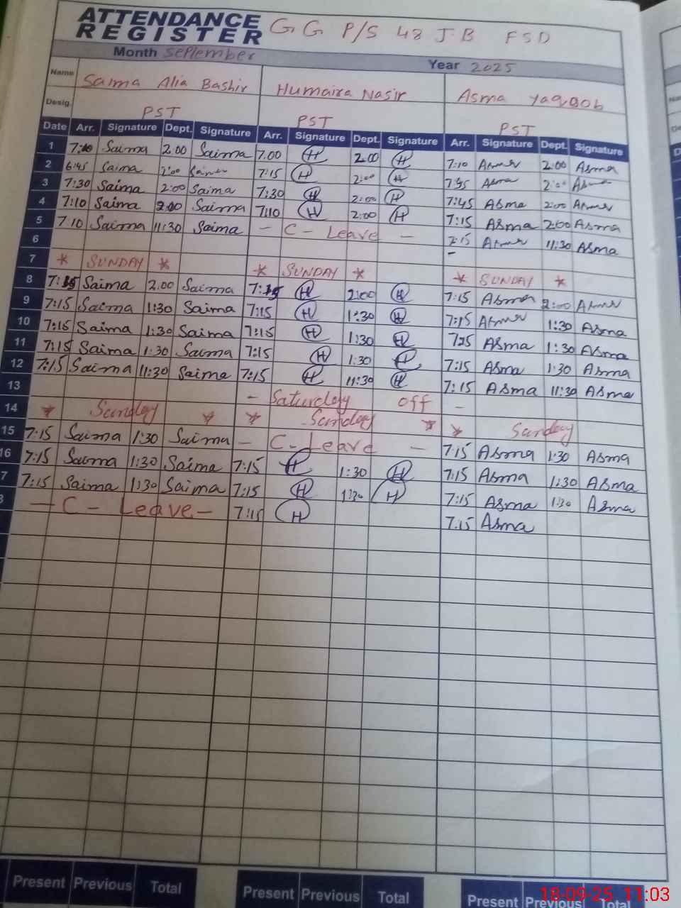 | 34**** | Sa**** Al**** Ba**** | PST | Regular | 0 | 0 | 0 | 0 | 0 | 0 | 0 | 0 | 0 | Casual |