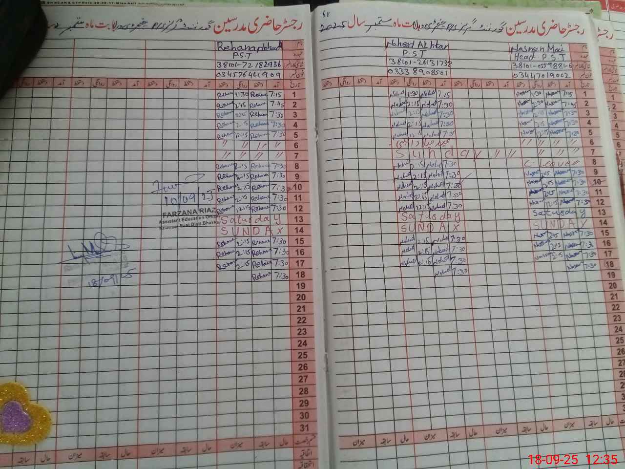 | District: BHAKKAR | Tehsil: BHAKKAR | Markaz: KHANSAR SHERQI-FEMALE | Level: Primary | |