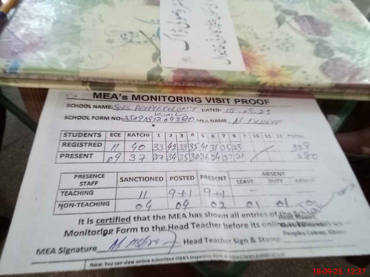 | EMIS Code: 36420148 | Name of School: GES PEOPLES COLONY, KHANEWAL | |||