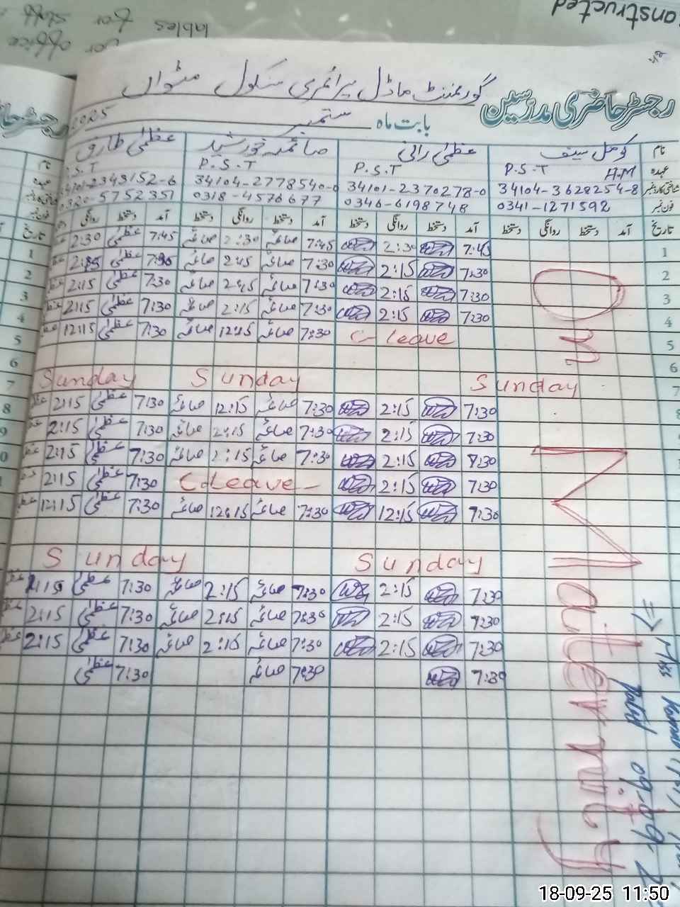 | Name: Uz**** Ta**** Designation: (School Headmaster's/Headmistress's) PST Phone/Cell Number: 03**** |