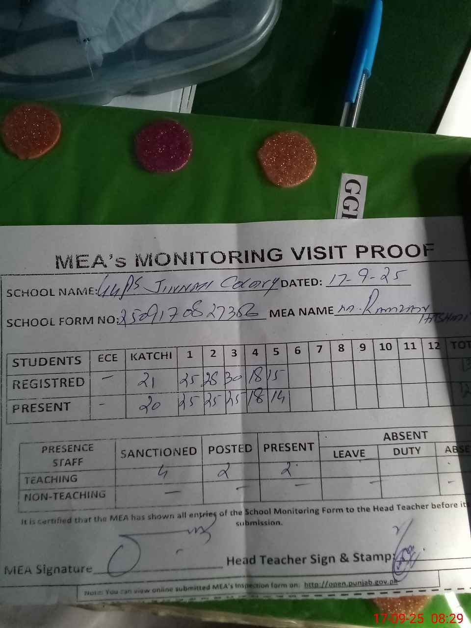 | EMIS Code: 36410637 | Name of School: GGPS JINNAH COLONY | |||