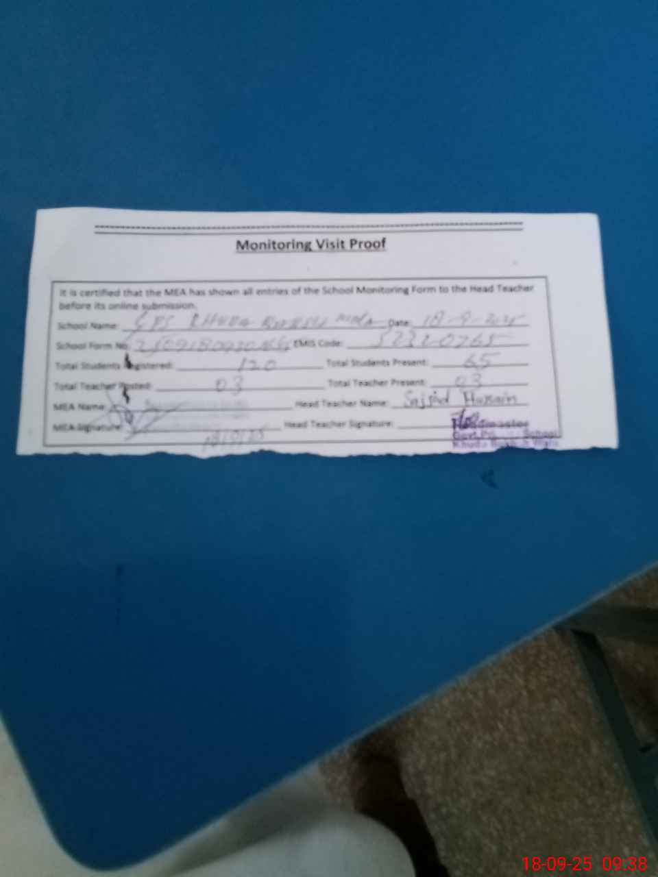 | EMIS Code: 32320765 | Name of School: GPS KHUDA BAKHSH WALA | |||