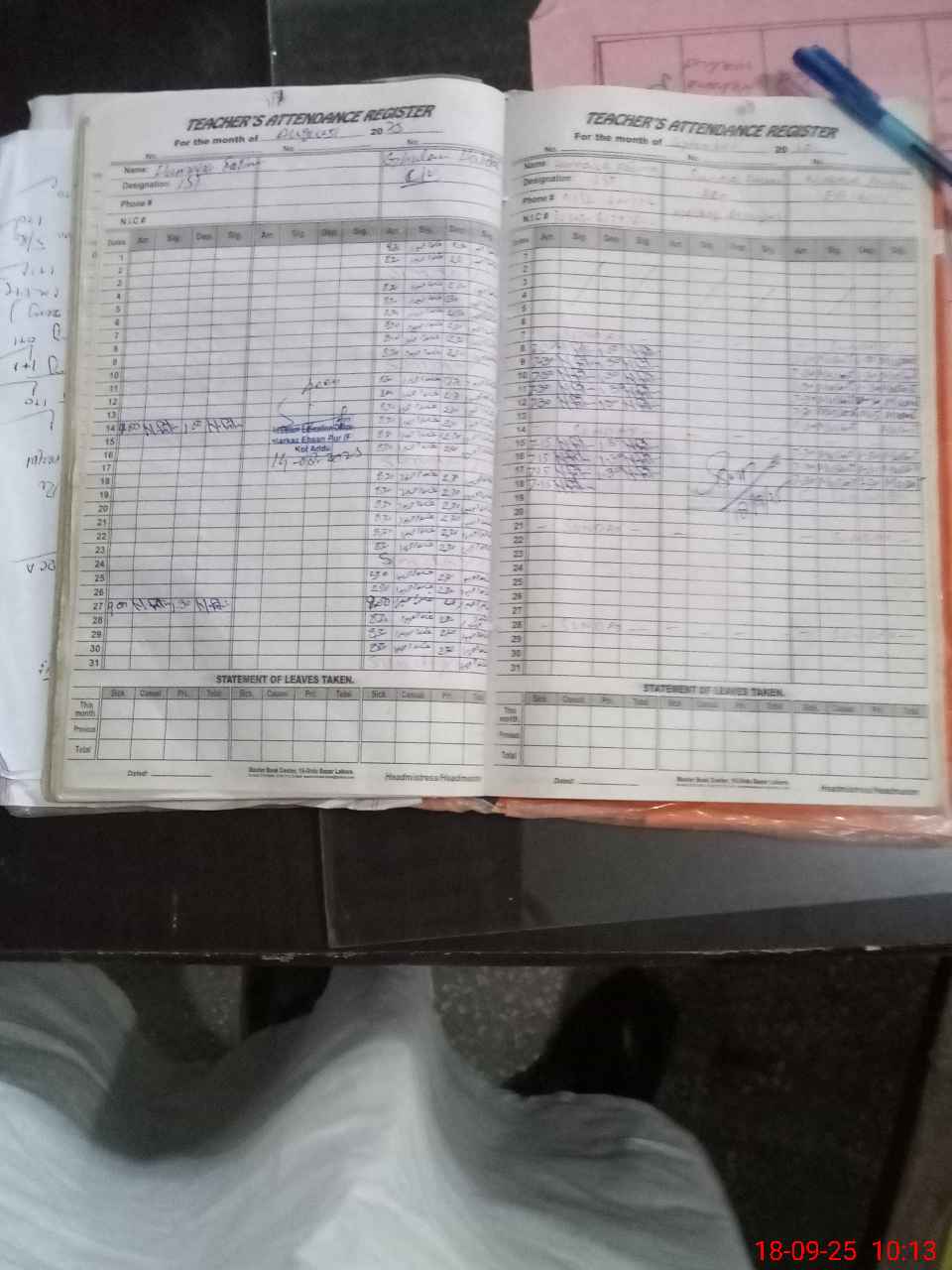 | CNIC | Full Name | Designation | R/C | Absence During Last Calender Month |