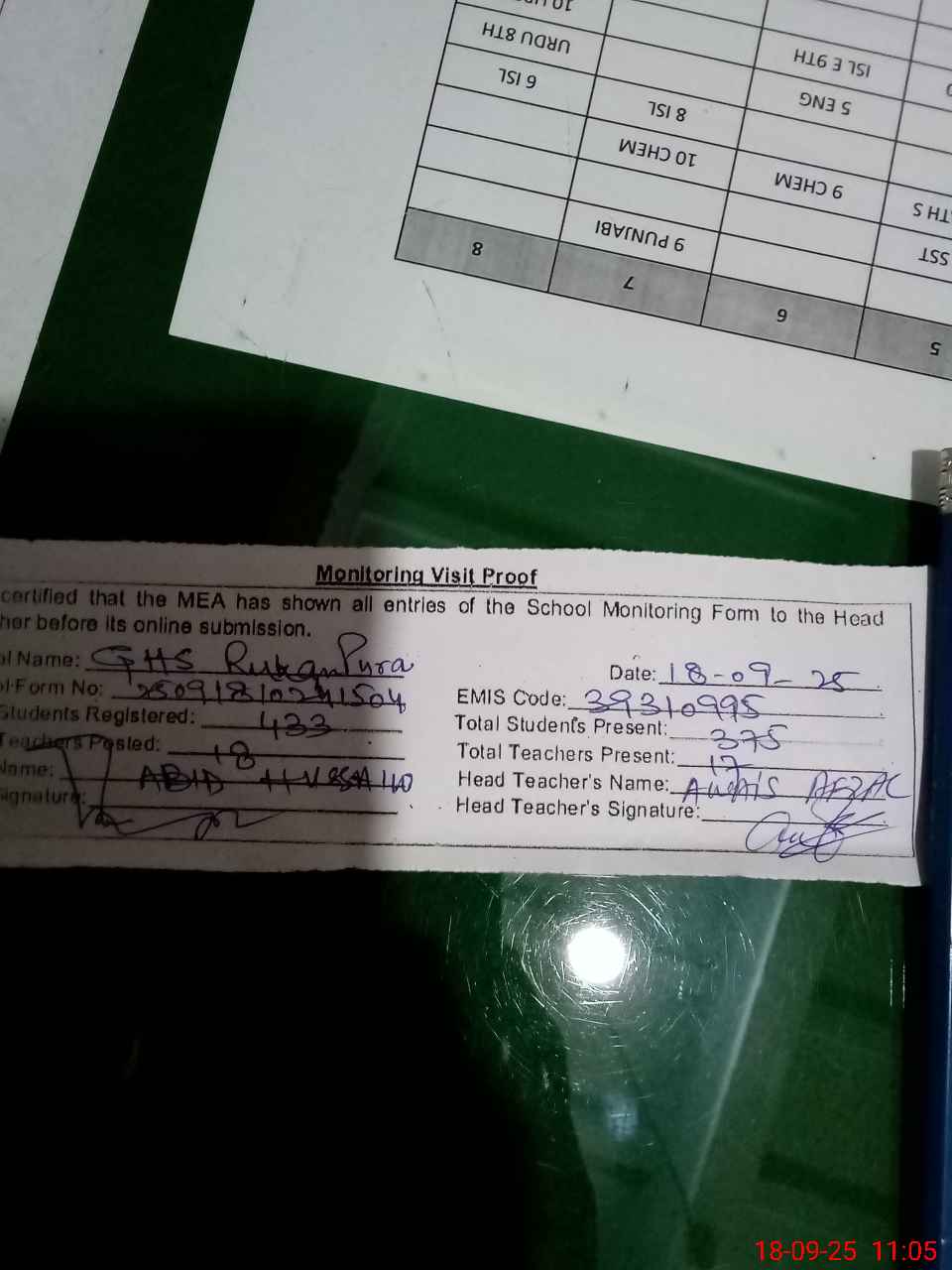 | Certified that this School was Inspected by the Undersigned MEA/DMO Today and the Information Stated Above is as Per Record. | |||||