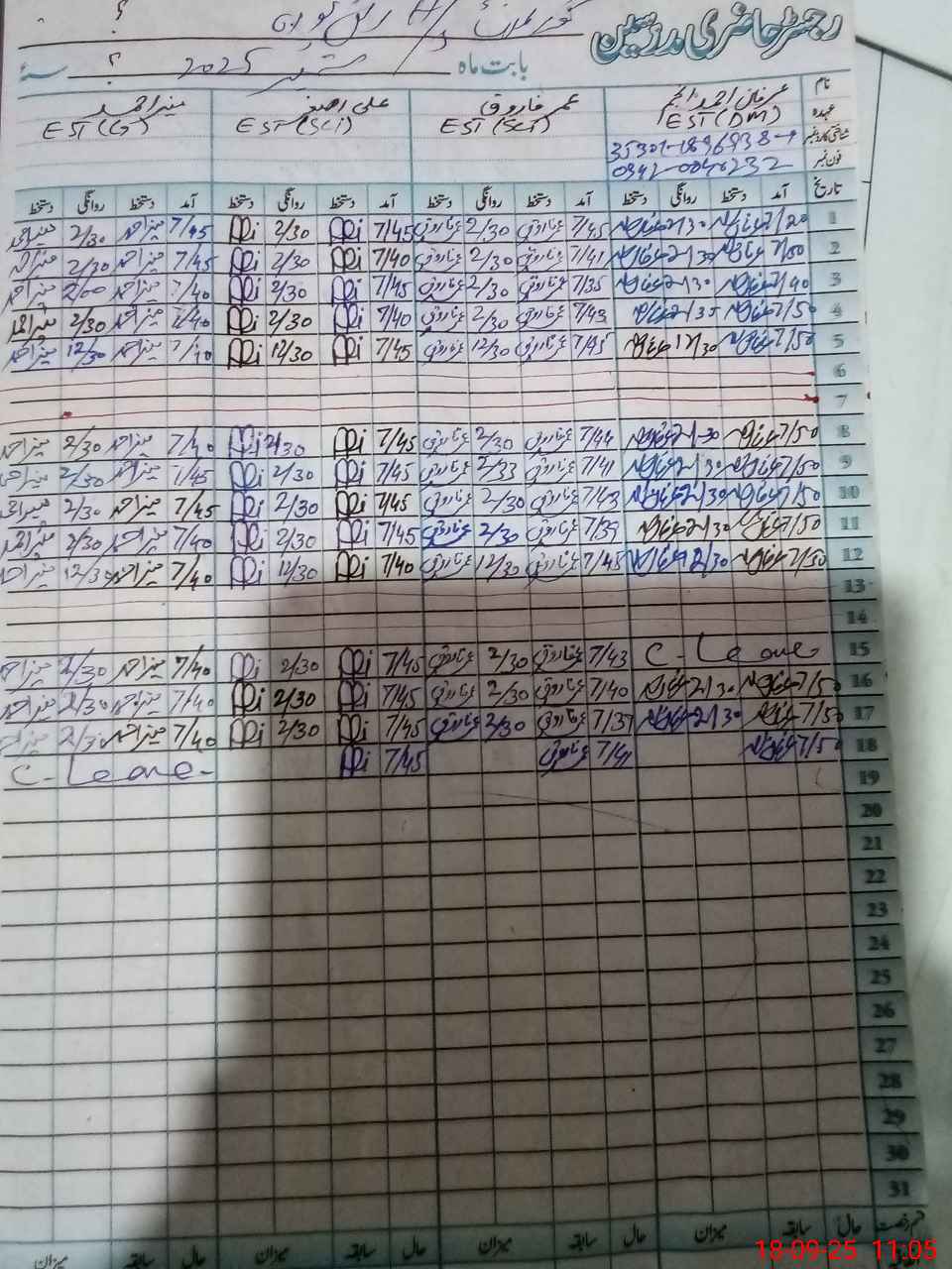 | Name: Aw**** Af**** Designation: (School Headmaster's/Headmistress's) SST Science Phone/Cell Number: 03**** |