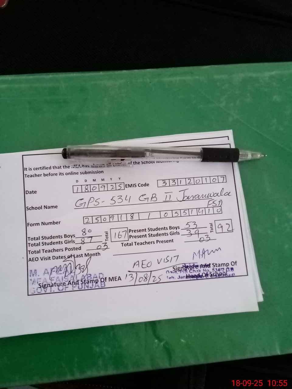| Attendance Register | Head Teacher | MEA with School | Visit Proof |