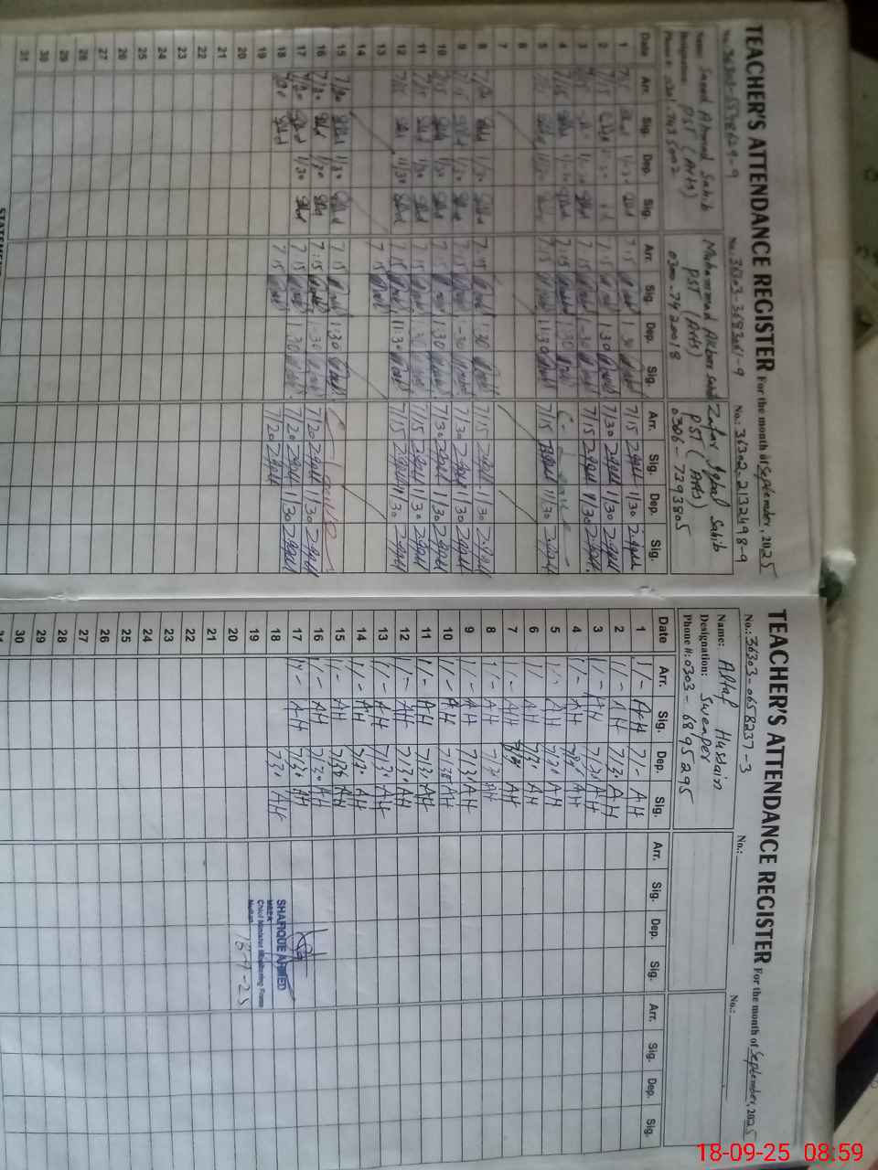| Name: ZA**** IM**** Designation: (School Headmaster's/Headmistress's) HEADMASTER. SST Arts Phone/Cell Number: 03**** |