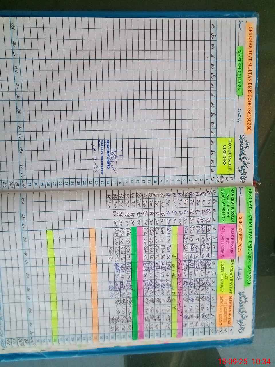 | EMIS Code: 36130288 | Name of School: GPS CHAK NO. 10 T MULTAN | |||