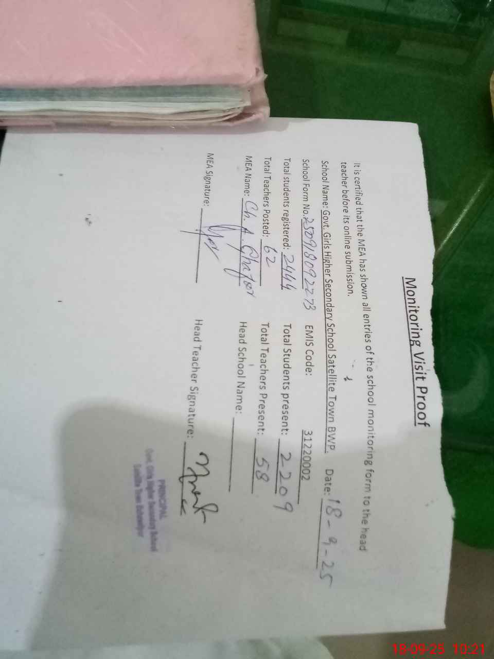 | EMIS Code: 31220002 | Name of School: GGHSS SATELLITE TOWN BAHAWALPUR | |||