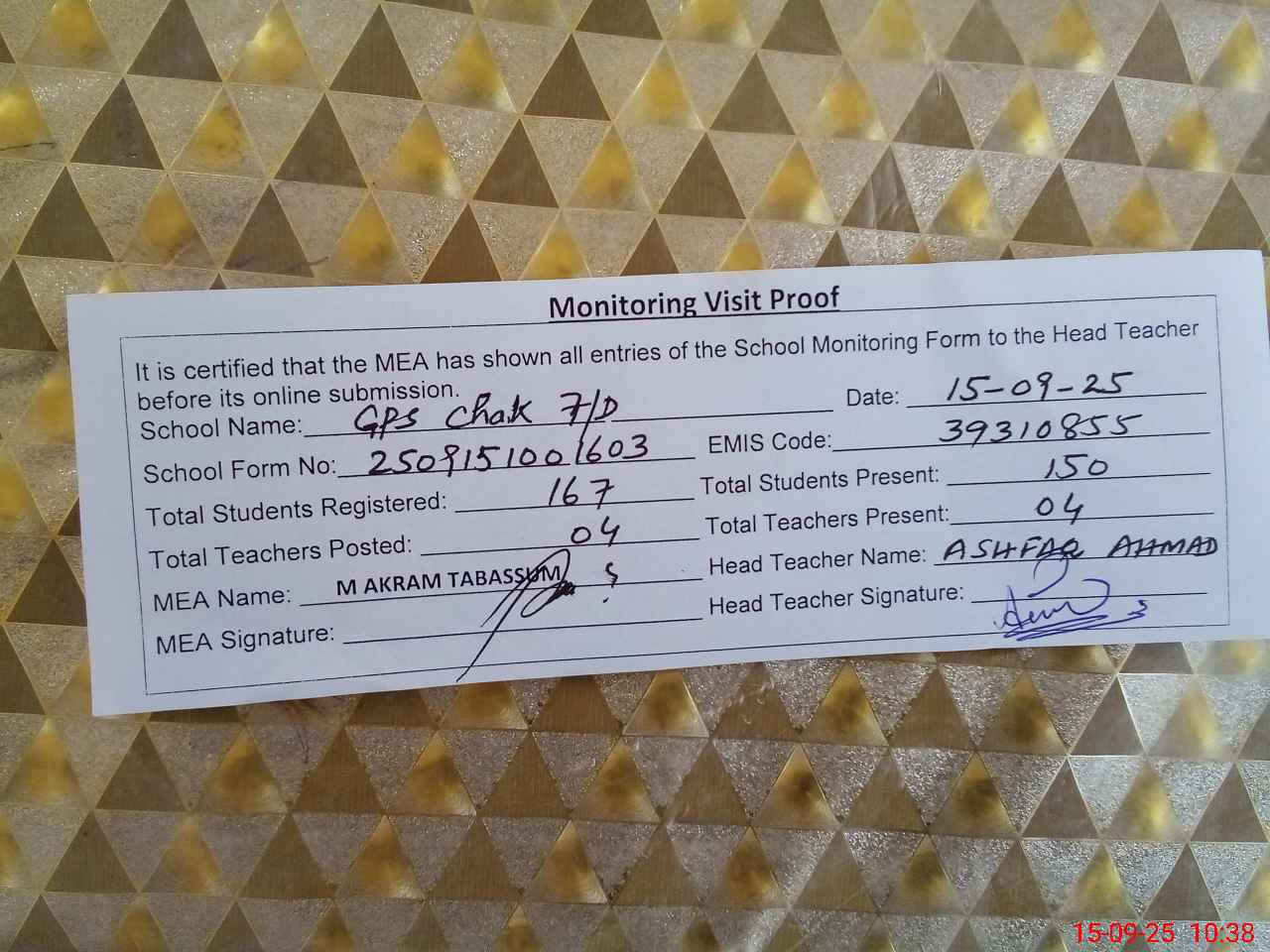 | EMIS Code: 39310855 | Name of School: GPS CHAK 7/D | |||