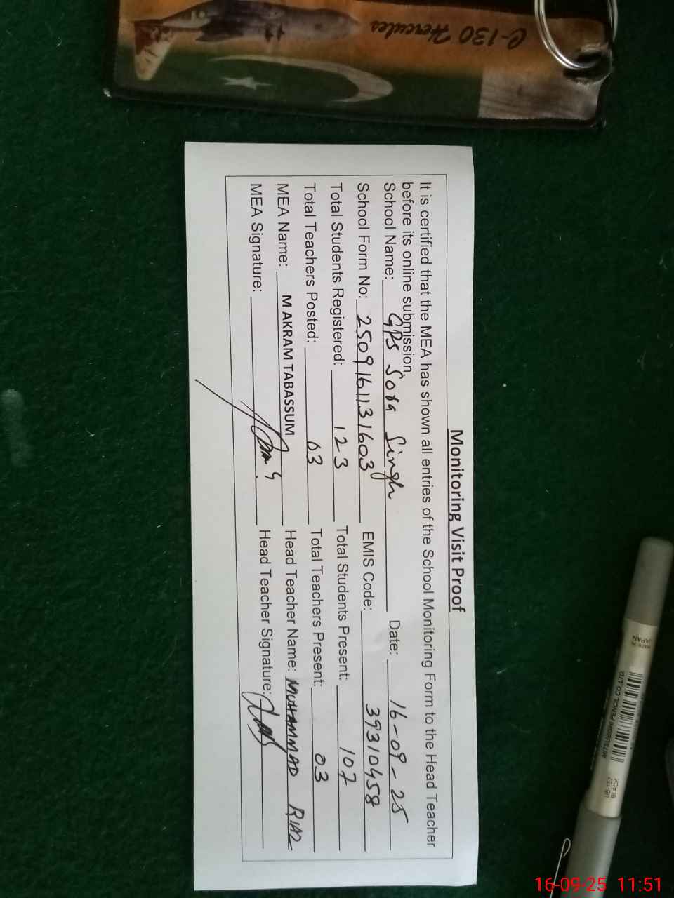 | EMIS Code: 39310458 | Name of School: GPS SORA SINGH | |||
