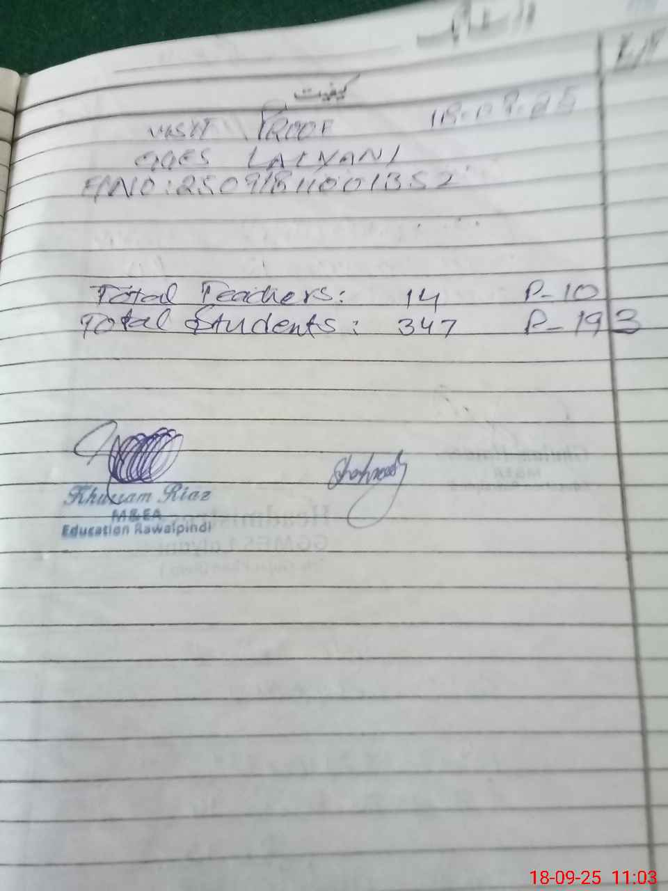 | District: RAWALPINDI | Tehsil: GUJAR KHAN | Markaz: GUJAR KHAN CITY-FEMALE | Level: Middle | |