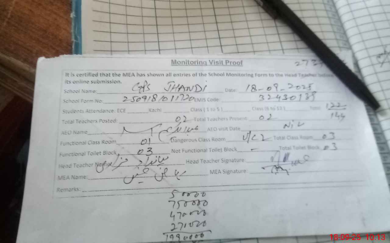 | EMIS Code: 32430139 | Name of School: GPS JHANDI | |||