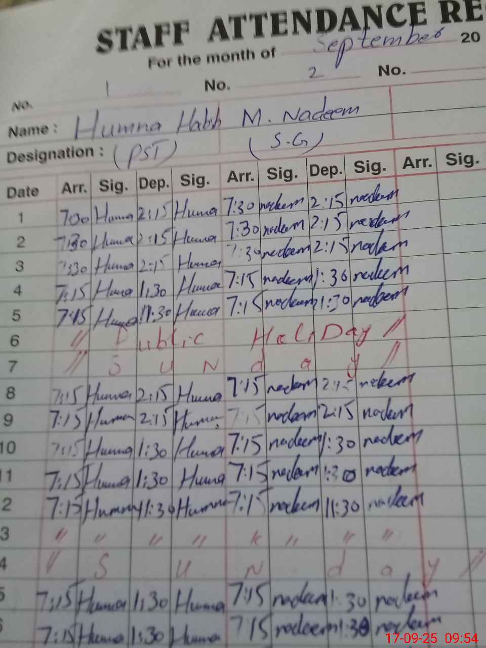 | Name: HU**** HA**** Designation: (School Headmaster's/Headmistress's) PST Phone/Cell Number: 03**** |