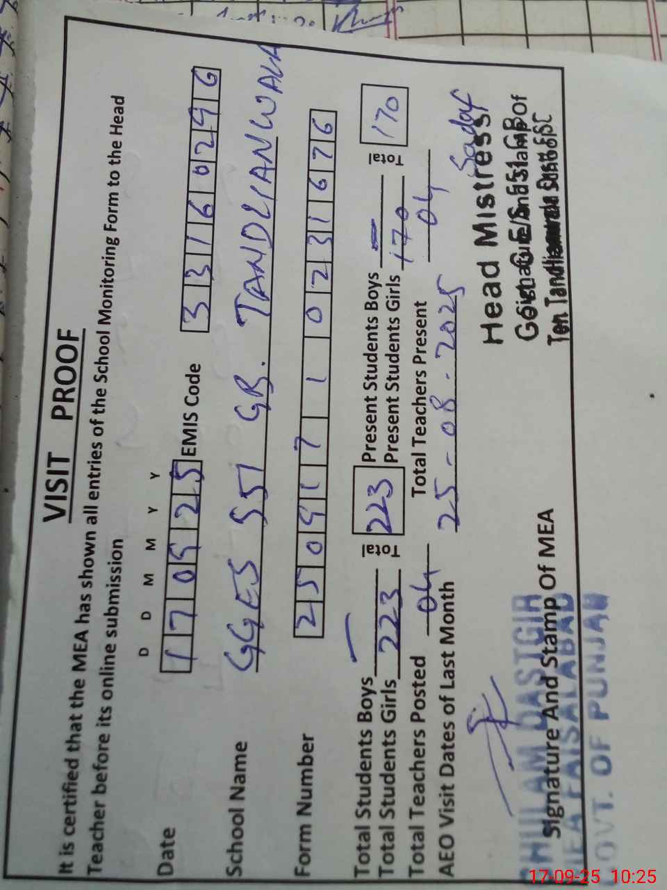 | Certified that this School was Inspected by the Undersigned MEA/DMO Today and the Information Stated Above is as Per Record. | |||||
