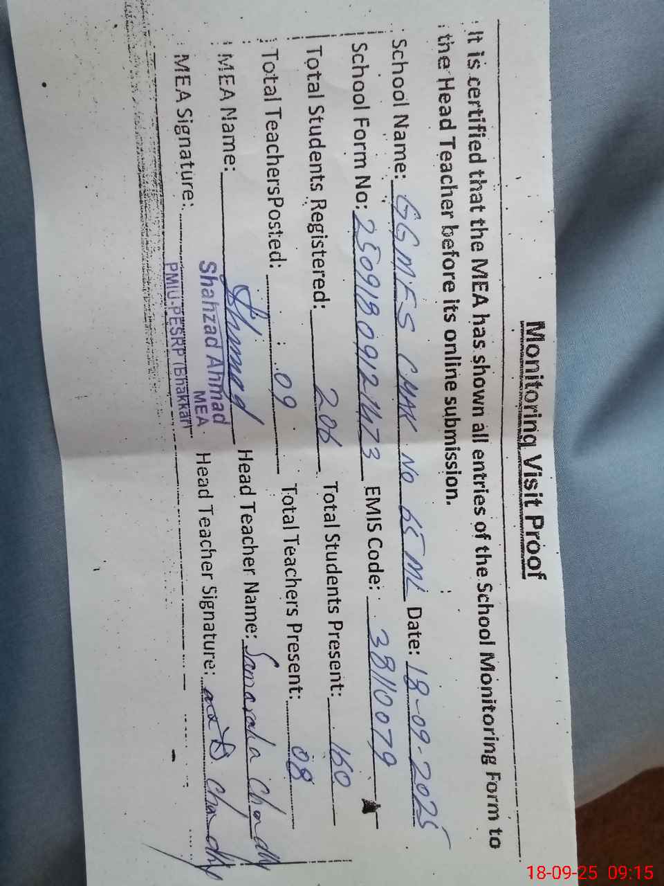 | EMIS Code: 38110079 | Name of School: GGMES CHAK NO.65/ML | |||