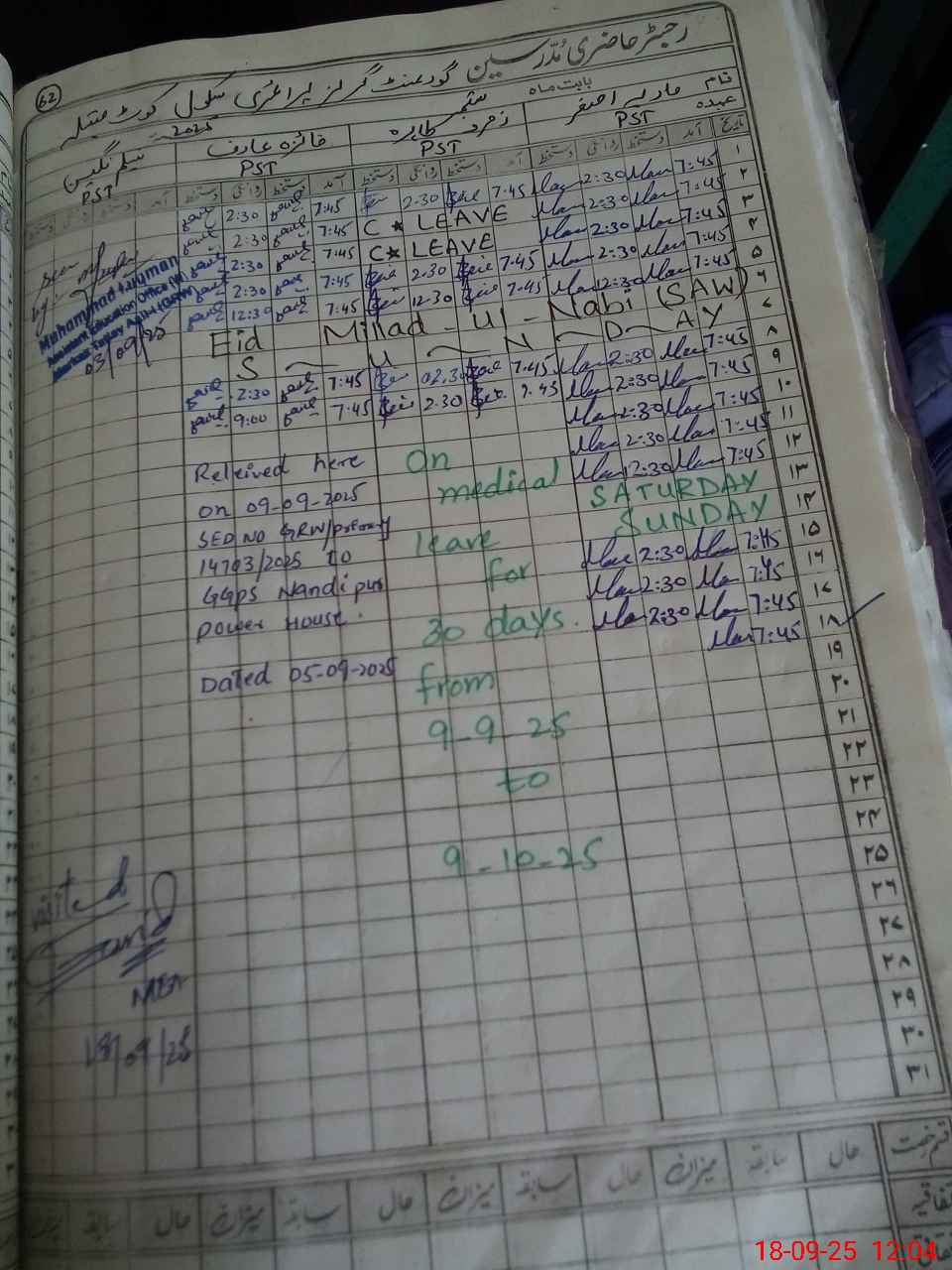 | Remarks (Use Separate Page if Required): No evidence of medical leave of Mst Zumurd Tahira and Mst Neelam Nageen are available in school | |||||