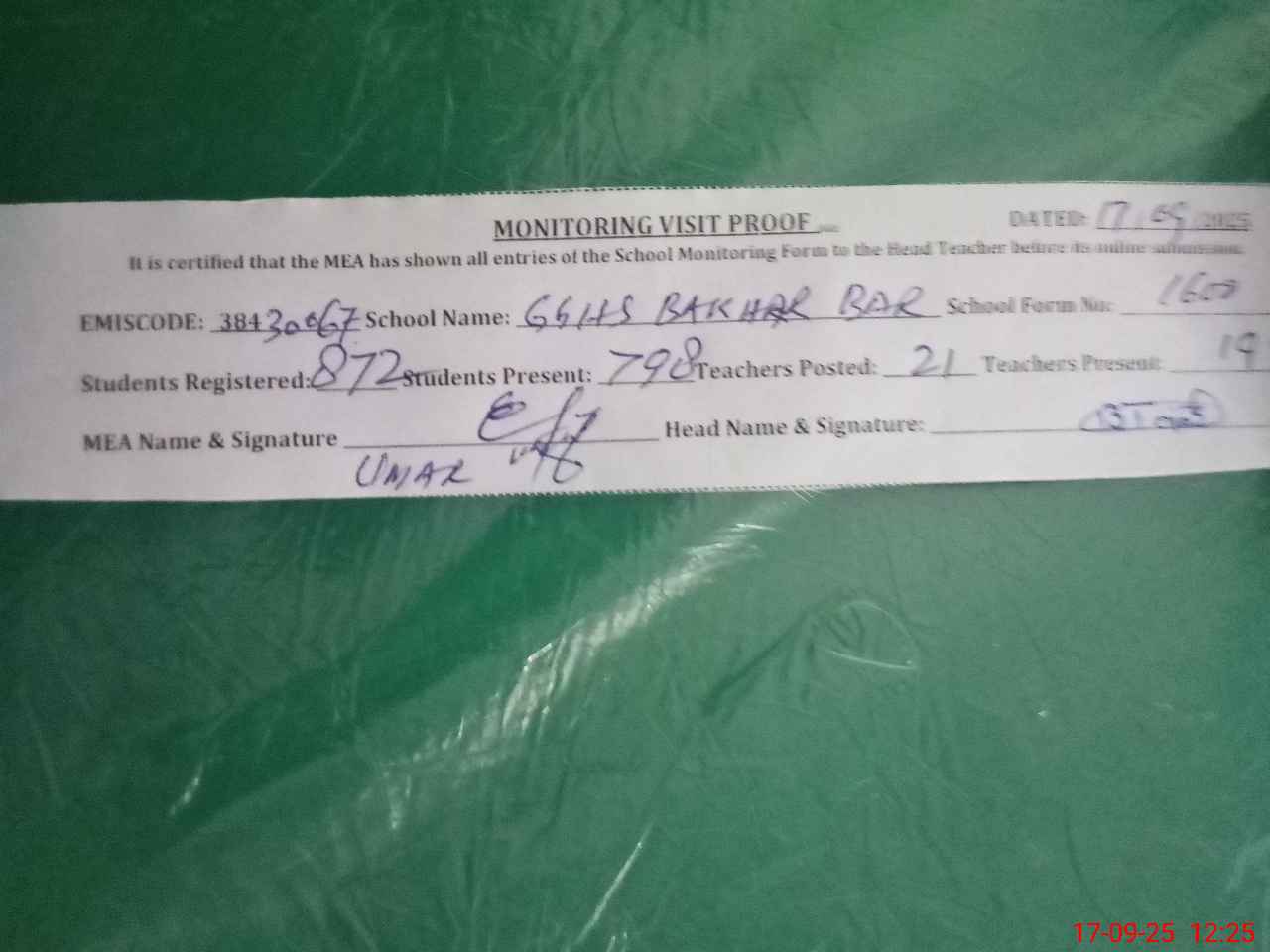 | EMIS Code: 38430067 | Name of School: GGHS BAKHARBAR | |||