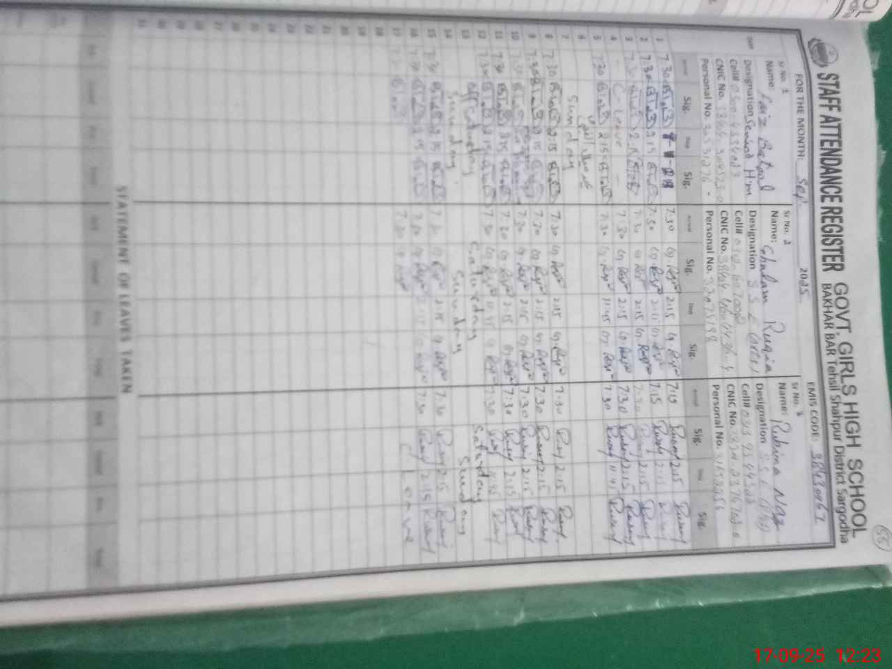 | Name: FA**** BA**** Designation: (School Headmaster's/Headmistress's) Sr.HEAD MISTRESS Phone/Cell Number: 03**** |
