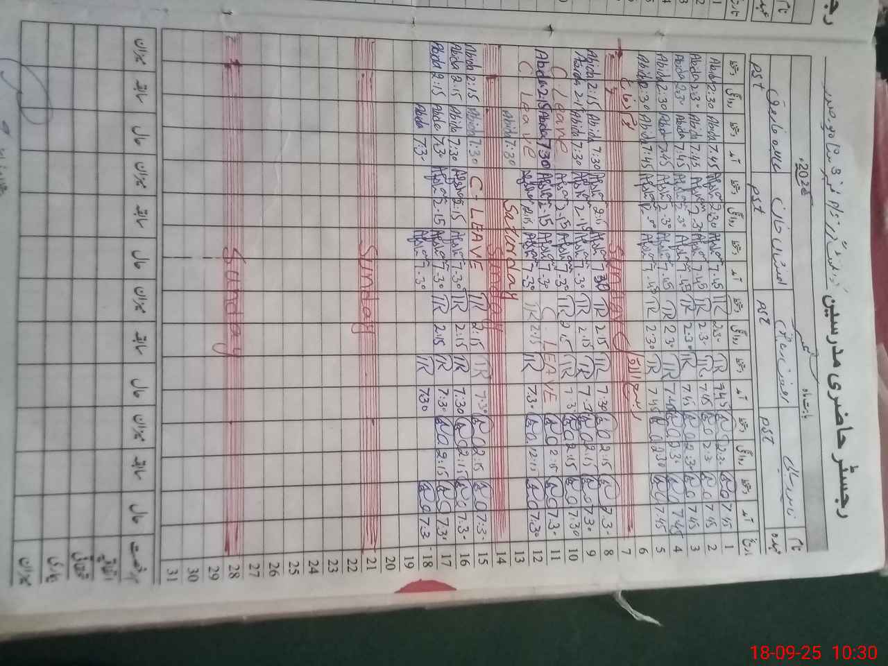 | CNIC | Full Name | Designation | R/C | Absence During Last Calender Month |