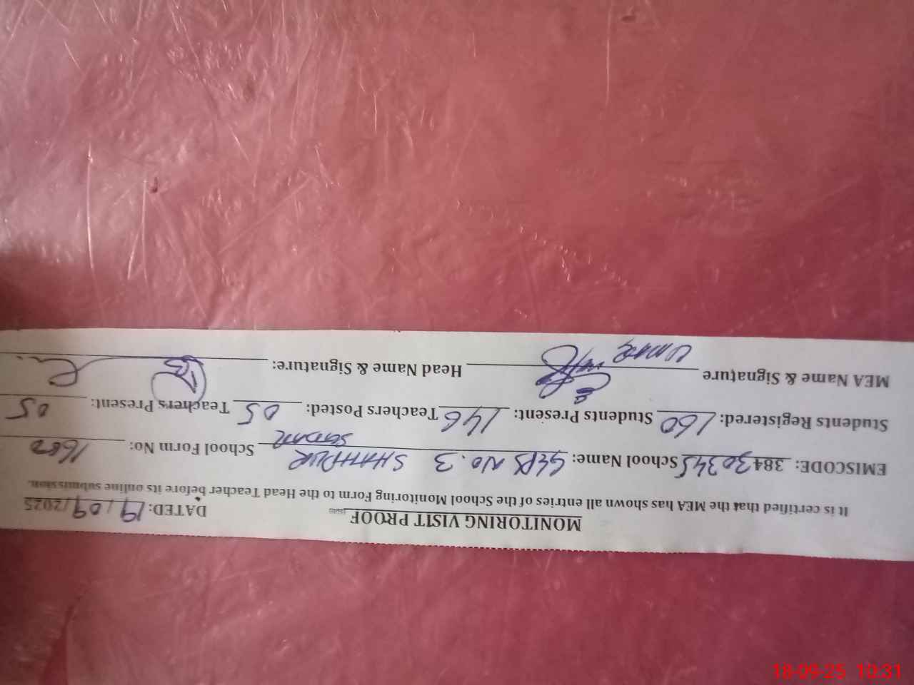 | Attendance Register | Head Teacher | MEA with School | Visit Proof |
