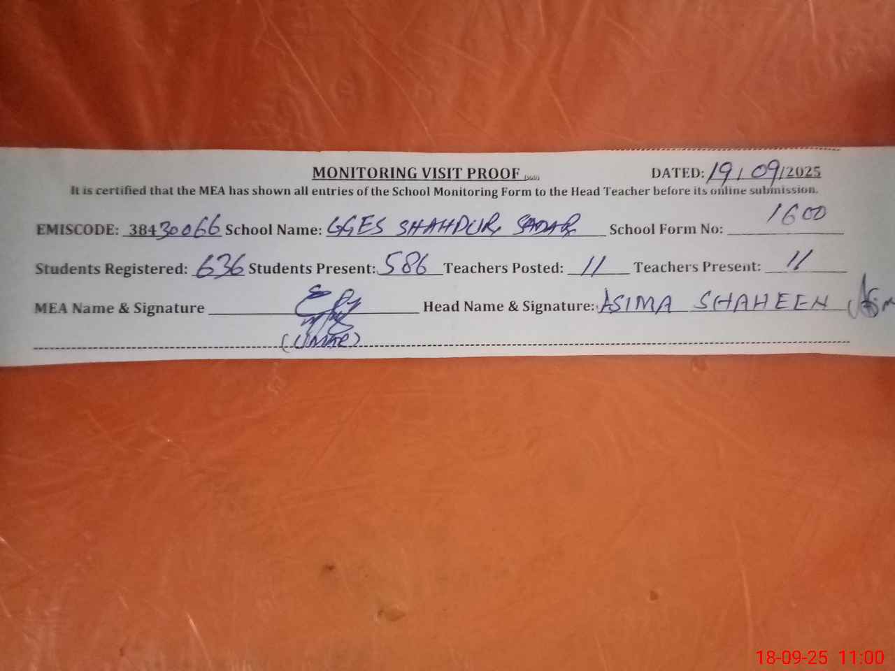 | EMIS Code: 38430066 | Name of School: GGES SHAHPUR SADAR | |||