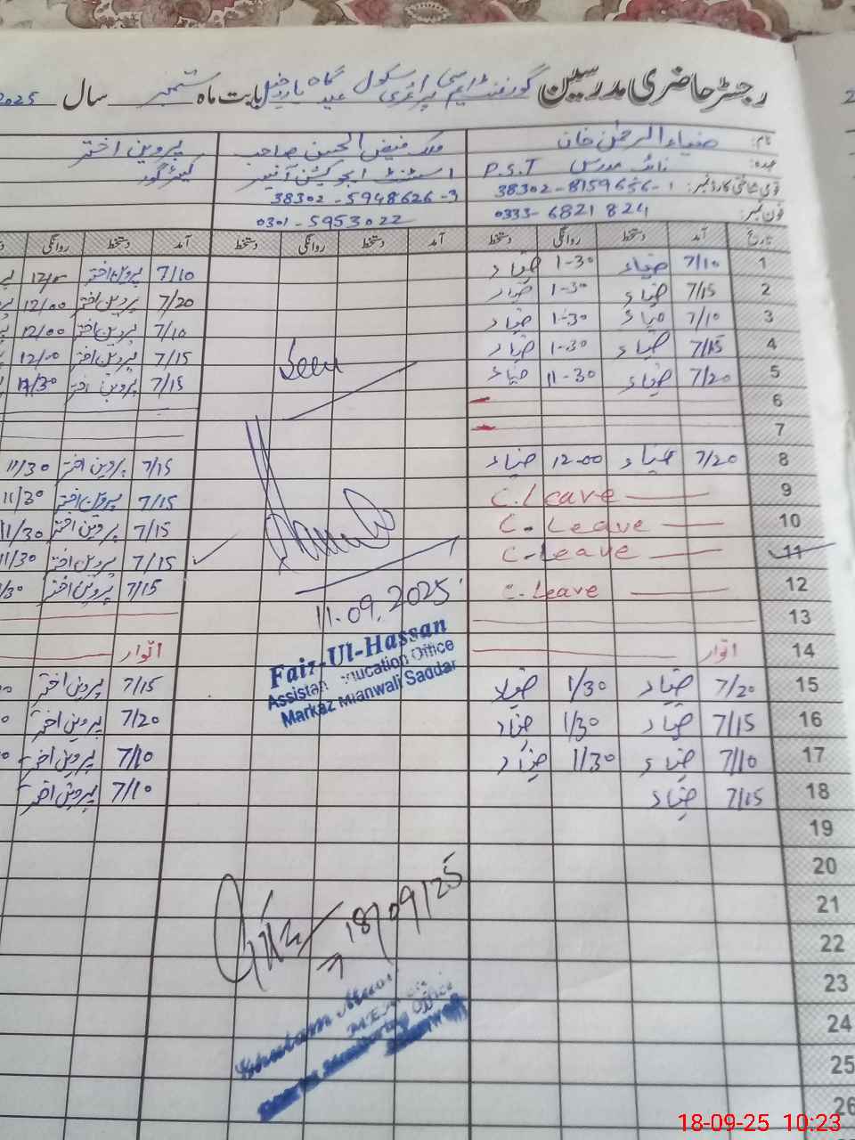 | Name: Za**** Kh**** Designation: (School Headmaster's/Headmistress's) PST/PTC/JV Phone/Cell Number: 03**** |