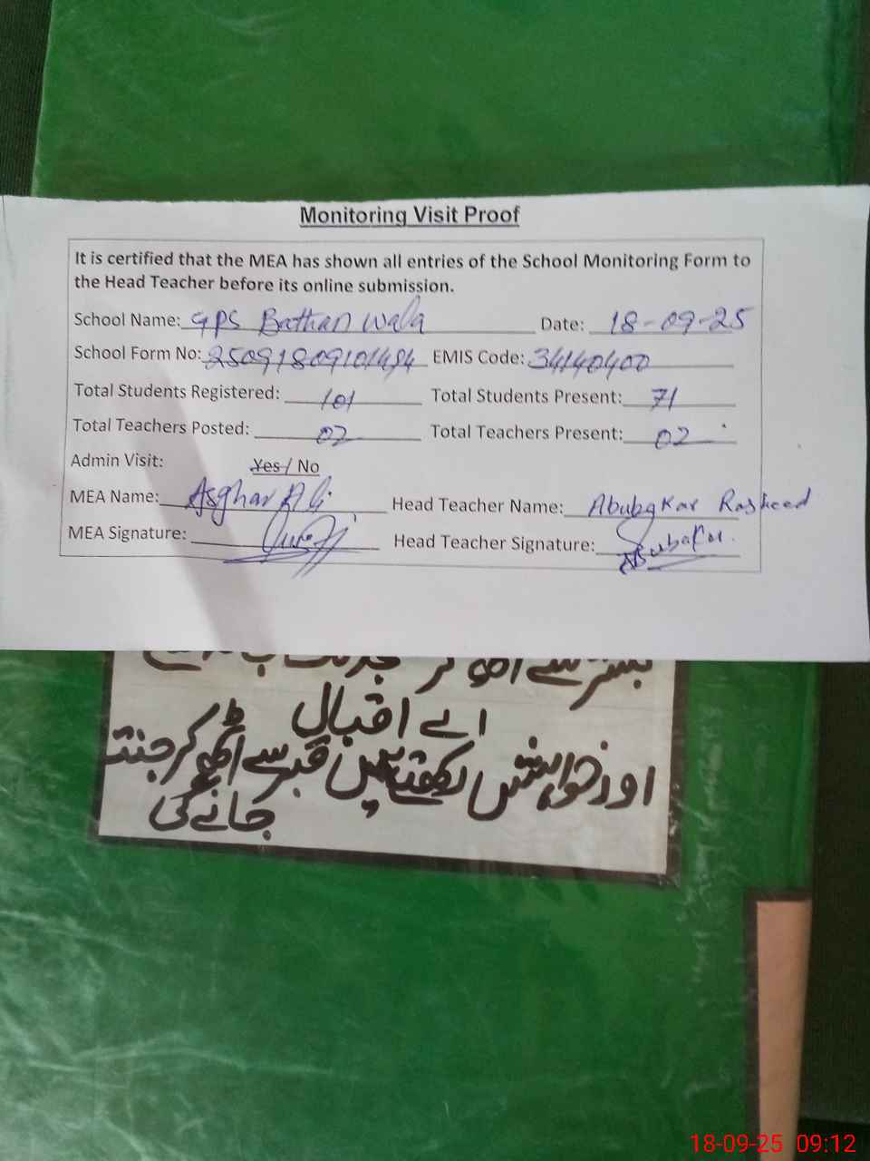 | EMIS Code: 34140400 | Name of School: GPS BATHAN WALA | |||