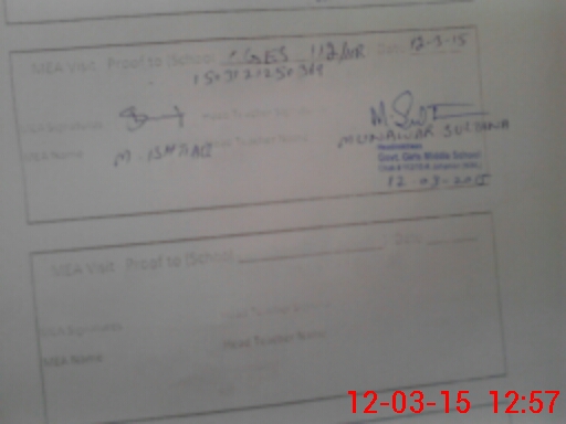 | Attendance Register | Head Teacher | MEA with School | Visit Proof |