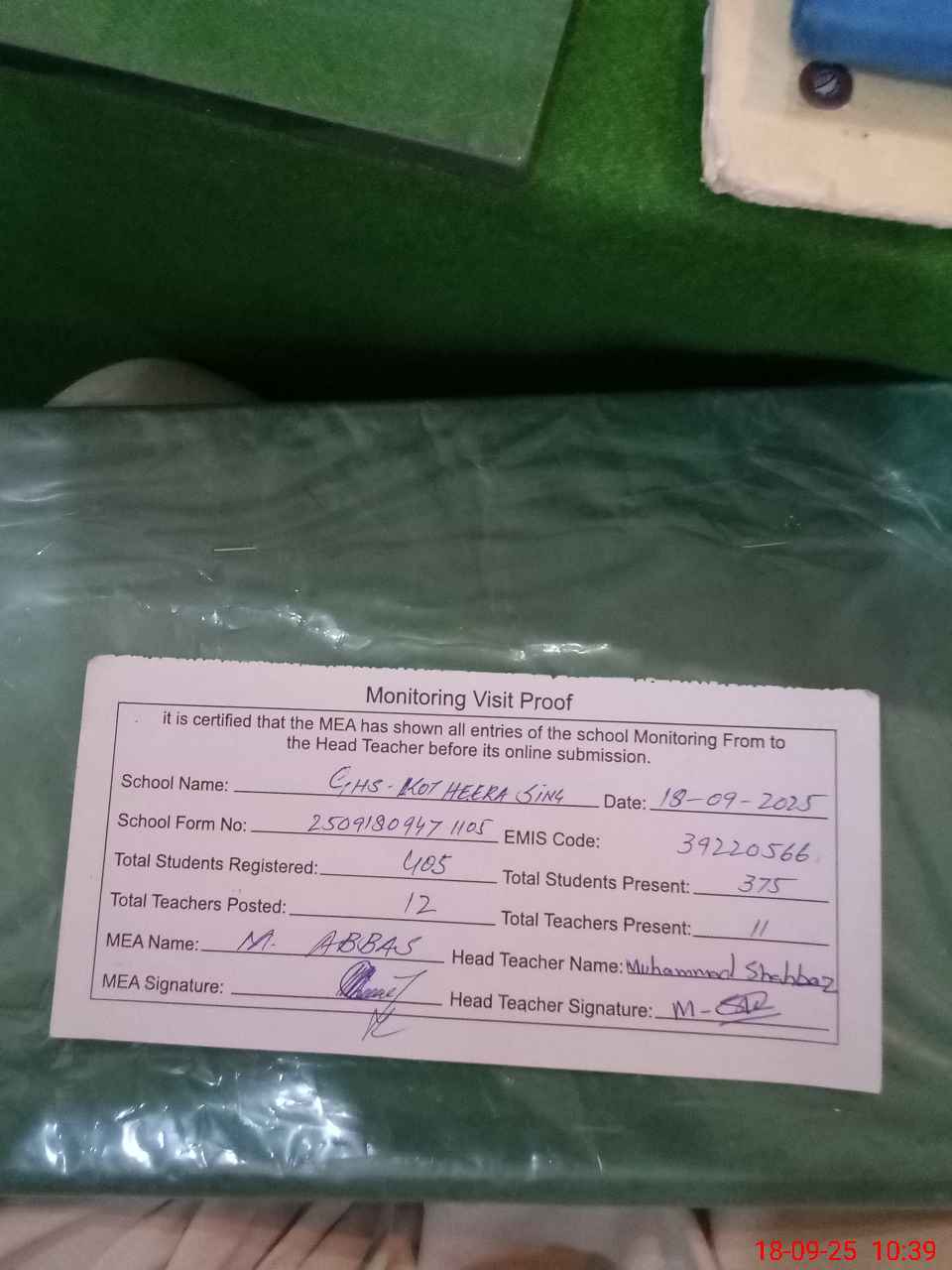 | EMIS Code: 39220566 | Name of School: GHS KOT HEERASINGH P.O SAME | |||