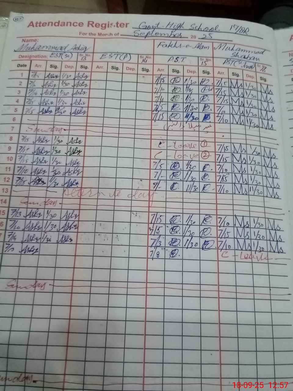 | CNIC | Full Name | Designation | R/C | Absence During Last Calender Month |