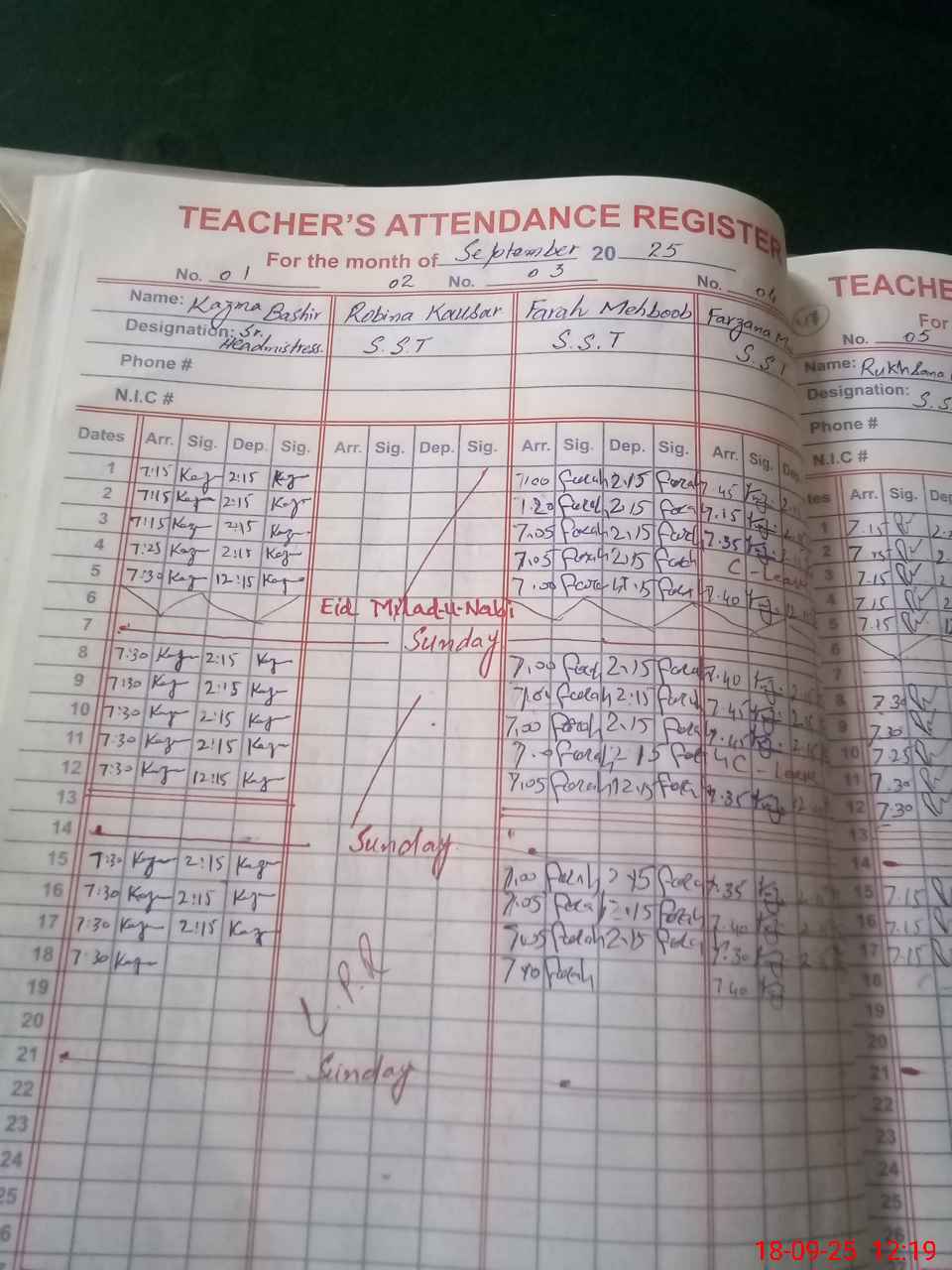 | CNIC | Full Name | Designation | R/C | Absence During Last Calender Month |