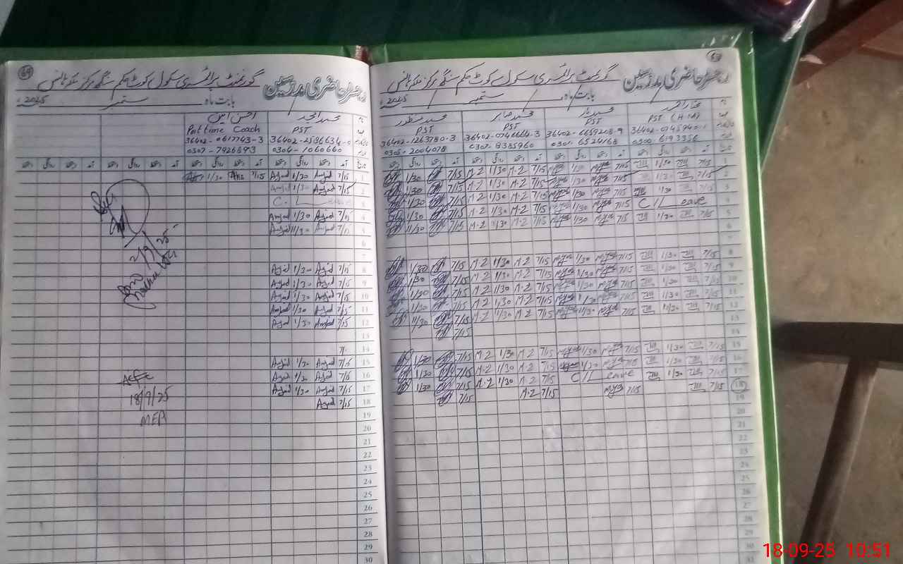| Attendance Register | Head Teacher | MEA with School | Visit Proof |