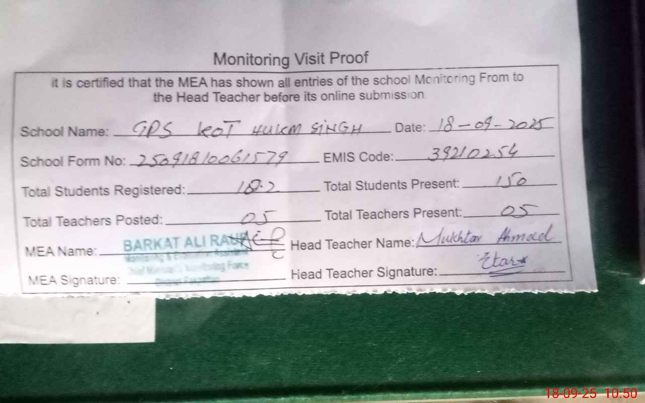 | EMIS Code: 39210254 | Name of School: GPS KOT HUKAM SINGH | |||
